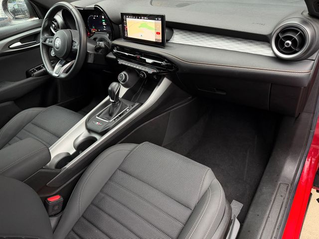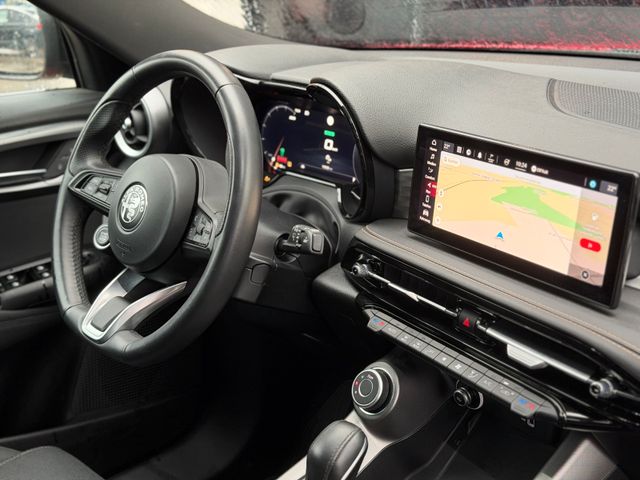 Adaptive Geschwindigkeitsregelanlage (Adaptive Cruise Control), Airbag Beifahrerseite abschaltbar, Airbag Fahrer-/Beifahrerseite, Ambiente-Beleuchtung LED, Anhänger-Stabilisierungs-Programm (TSA), Antriebs-Schlupfregelung (ASR), Antriebsart: Allradantrieb, Audio-Navigationssystem inkl. Bluetooth-Freisprecheinrichtung, Audiosystem: HiFi-Anlage mit CD-Wechsler, Außenspiegel elektr. verstell-, heiz- und anklappbar mit Blinkleuchte LED, Außenspiegel schwarz, glänzend, Bremsassistent (HBA / EBA), Bremssättel eloxiert, Dachhimmel schwarz, Einparkhilfe elektronisch vorn und hinten, Elektron. Bremskraftverteiler (EBD), Elektron. Stabilitätskontrolle (ESC), Fahrassistenz-System: Alfa Romeo D.N.A.-Fahrdynamik-System, Fahrassistenz-System: Autonomer Notbrems-Assistent (AEB), Fahrassistenz-System: Berganfahrhilfe (Hill-Holder), Fahrassistenz-System: Fernlichtassistent, Fahrassistenz-System: Frontkollisionswarnung (FCW), Fahrassistenz-System: Intelligente Geschwindigkeitskontrolle (ISC), Fahrassistenz-System: Müdigkeitserkennungs-Sensor (DAA), Fahrassistenz-System: Fahrassistenz-System: Spurverlassenswarnung (LDW), Fahrassistenz-System: Verkehrszeichenerkennung (TSR), Fahrmodusschalter, Fahrwerksdämpfung elektronisch geregelt (Dynamic Suspension), Fensterheber elektrisch vorn + hinten, Fensterrahmen schwarz, Fußmatten vorn und hinten, Heckklappe/-Deckel elektr. betätigt (öffnen + schliessen, sensorgesteuert), Heckleuchten LED, Heckspoiler Wagenfarbe, Hybrid 206 kW (Motor 1,3 Ltr. - 132 kW), Induktionsladeschale für Smartphone, Innenspiegel mit Abblendautomatik, Instrumentenanzeige TFT-Farbdisplay (12,3 Zoll), Intelligente Adaptive Geschwindigkeitsregelanlage (Intelligent Adaptive Cruise Control / I-ACC), Karosserie: 5-türig, Keyless-Entry, Klimaautomatik 2-Zonen, Kopf-Airbag-System, Kurvenbremskontrolle (CBC / ESBS), Kühlergrill Aluminium-Optik, Lautsprecher (6), Lendenwirbelstütze Sitz vorn links, elektr. verstellbar, Lenkrad (Sport/Leder, unten abgeflacht), Lenksäule (Lenkrad) verstellbar (vertikal / axial), Licht- und Regensensor, LM-Felgen, Luftdüsen im Fond, Otto-Partikelfilter (OPF), Parkbremse elektrisch, Radstand 2636 mm, Reifendruck-Kontrollsystem, Rückfahrkamera, Rücksitz geteilt / klappbar (Asymmetrisch), Schadstoffarm nach Abgasnorm Euro 6d, Scheibenbremsen vorn und hinten, Scheinwerfer Voll-LED, Seitenairbag, Seitenscheiben hinten und Heckscheibe abgedunkelt, Service-System: Alfa Romeo Connect Services, Service-System: Amazon Alexa, Sitzbezug / Polsterung: Stoff/Kunstleder, Sitze vorn mechan. verstellbar (6-fach), Smartphone Schnittstelle (Apple CarPlay & Android Auto), Sonnenblenden mit Spiegel (beleuchtet), Start-Stop-Knopf, Start/Stop-Anlage, Steckdose (12V-Anschluß) im Koffer-/Laderaum, Steckdose (12V-Anschluß) in Mittelkonsole, Stoßfänger / Radkästen / Seitenschürzen schwarz glänzend, Ti, Türgriffe außen Wagenfarbe, Warnanlage für Sicherheitsgurte