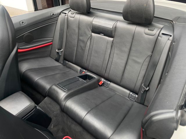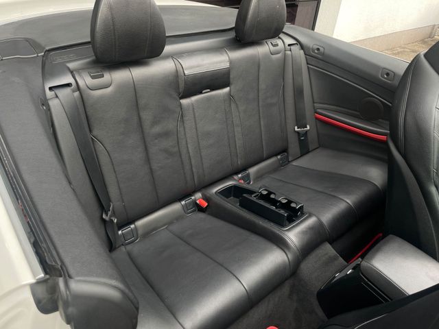 Sonderausstattung:Ablage-Paket, Airbag Beifahrerseite abschaltbar, Audio-Navigationssystem Professional, Ausstattungs-Paket: ConnectedDrive Services, Design- und Ausstattungslinie Sport, Durchladeeinrichtung (Mittelarmlehne hinten), Exterieurumfänge Aluminium satiniert, Klimaautomatik 2-Zonen mit autom. Umluft-Control, Licht-Paket, Metallic-Lackierung, Nackenheizung, Park-Distance-Control (PDC) vorn und hinten, Raucher-Paket, Reifensystem Run-Flat (mit Notlaufeigenschaften), Windschutz (Cabrio)