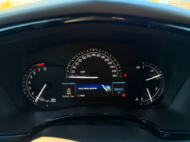Airbag Fahrer-/Beifahrerseite, Außenspiegel elektr. verstell-, heiz- und anklappbar, mit Abblendautomatik, Bluetooth-Schnittstelle, Driver Awareness-Paket, Einparkhilfe vorn und hinten, Fensterheber elektrisch vorn + hinten, Head-up-Display, Heckscheibe heizbar, Infotainment-System: Cadillac User Experience (CUE) mit Touchscreen, Innenausstattung: Jet Black und Aluminium gebürstet, Innenraumbeleuchtung LED, Innenraumfilter: Aktivkohlefilter (Geruchsfilter), Innenspiegel mit Abblendautomatik, Isofix-Aufnahmen für Kindersitz, Karosserie: 5-türig, Klimaautomatik 2-Zonen, Knieairbag Beifahrerseite, Knieairbag Fahrerseite, Komfortsitze vorn (inkl. Belüftung / Sitzheizung), Kopf-Airbag-System (Windowbag), Kühlergrill mit Chromleisten, Ladesystem (Laderaummanagement), Lendenwirbelstütze Sitz vorn links und rechts, elektr. verstellbar, Lenkrad heizbar, Lenkrad mit Multifunktion, Lenksäule (Lenkrad) elektr. verstellbar, Memory-Paket, Motor 3,6 Ltr. - 231 kW V6 KAT, Navigations-Paket, Radstand 2857 mm, Raucher-Paket, Rückfahrkamera, Rücksitz geteilt / elektr. umklappbar, Schadstoffarm nach Abgasnorm Euro 6, Sicherheits-Paket, erweitert, Sitze vorn elektr. verstellbar (8-fach), Sitzheizung vorn, Sonnenblenden mit Spiegel (beleuchtet), Start/Stop-Anlage, Steckdose 230V, Türgriffe außen mit LED-Beleuchtung