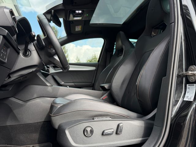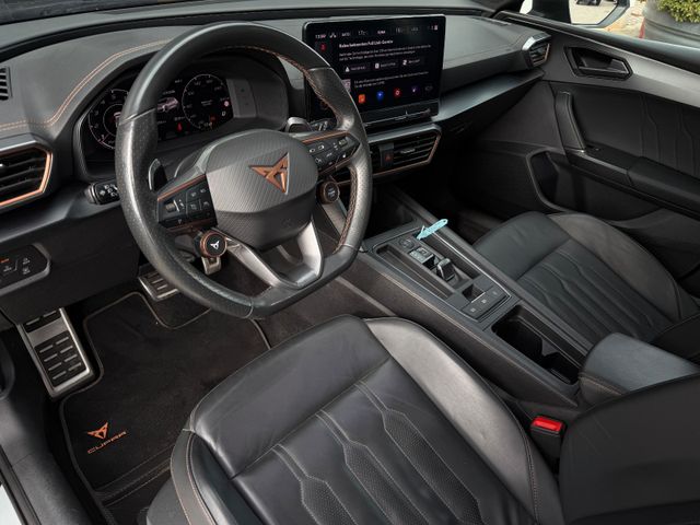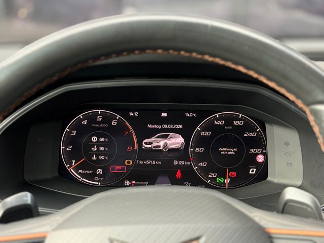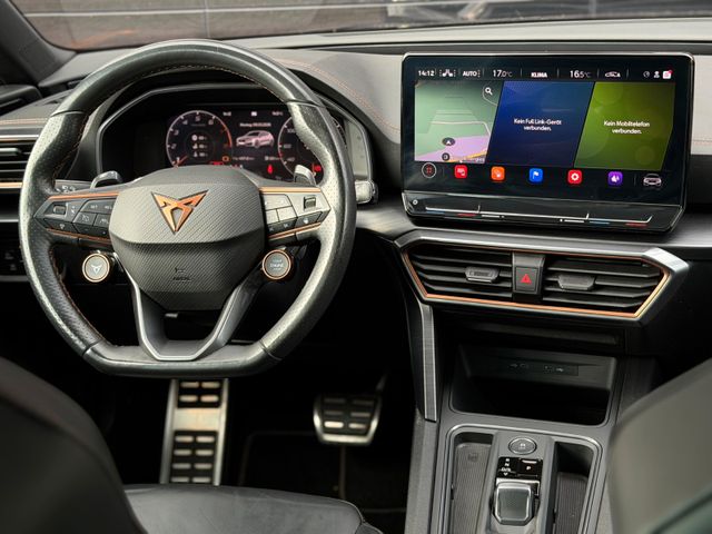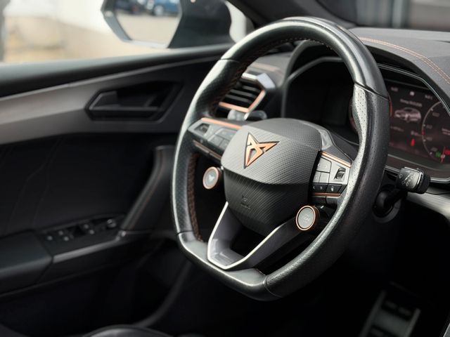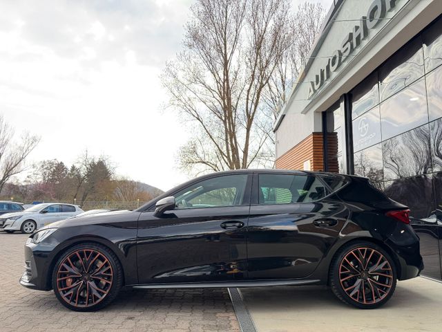6 Lautsprecher, Airbag Beifahrerseite abschaltbar, Airbag Fahrer-/Beifahrerseite, Ambiente-Beleuchtung Smart Ambient Light, Antriebs-Schlupfregelung (ASR), Audio-Navigationssystem mit Touchscreen Farbbildschirm, Außenspiegel elektr. verstell-, heiz- und anklappbar mit Spiegelabsenkung und Welcome Light, Blinkleuchten LED in Außenspiegel integriert, Dachhimmel schwarz, Doppeltonhorn, Dynamic-Paket, Einstiegsleisten (Aluminium) vorn, beleuchtet, Fahrassistenz-System: Fahrprofilauswahl (CUPRA Drive Profile), Fensterheber elektrisch vorn + hinten mit Komfortschaltung, Fensterzierleisten schwarz hochglänzend, Gepäckraumabdeckung / Rollo, Heckleuchten LED mit dynamischem Blinklicht, Heckleuchten Voll-LED mit dynamischem Lichtband (Infinite Light), Isofix-Aufnahmen für Kindersitz an Rücksitz, Karosserie: 5-türig, Klimaanlage Climatronic 3-Zonen, Kombiinstrument digital (virtual cockpit), Kopf-Airbag-System, Lendenwirbelstütze Sitz vorn rechts, verstellbar, Licht- und Sicht-Paket, Mittelkonsole vorn mit Mittelarmlehne, Becherhalter, Ablagebox und Luftausströmer hinten, Mobile Online Dienste Cupra Connect, Motor 2,0 Ltr. - 221 kW 16V TSI, Notrufsystem, Otto-Partikelfilter (OPF), Parkbremse elektrisch, Radioempfang digital (DAB+), Rücksitzlehne geteilt/klappbar (1/3-2/3), Schadstoffarm nach Abgasnorm Euro 6d, Seitenairbag, Seitenairbag vorn mitte (Central Airbag), Seitenscheiben hinten und Heckscheibe abgedunkelt, Sitz vorn links höhenverstellbar, Sitz vorn rechts höhenverstellbar, Sonnenblende links mit Spiegel (beleuchtet), Sonnenblende rechts mit Spiegel (beleuchtet), Sport-Schalensitze vorn mit integrierten Kopfstützen, Start/Stop-Anlage, USB-Ladeanschlüsse (2-fach, Typ C) für 2.Sitzreihe, USB-Schnittstelle vorn (2-fach, Typ C), Verzurrösen Koffer-/Laderaum, Warnanlage für Sicherheitsgurt-System, Wärmeschutzverglasung