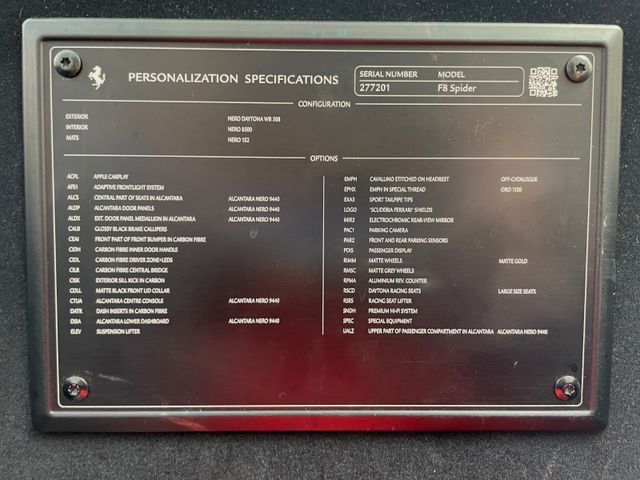 Ferrari F8 Spider Lift Carbon Racing Seats Pas. Display