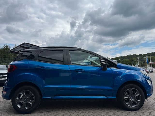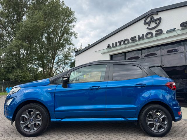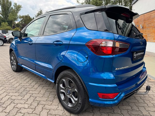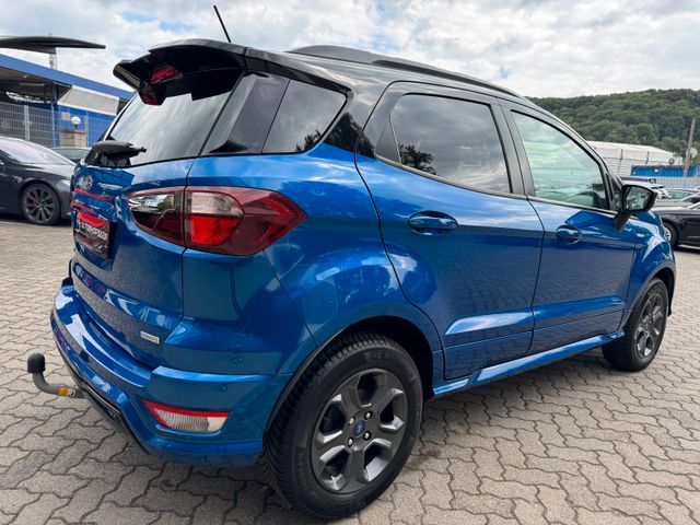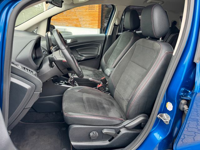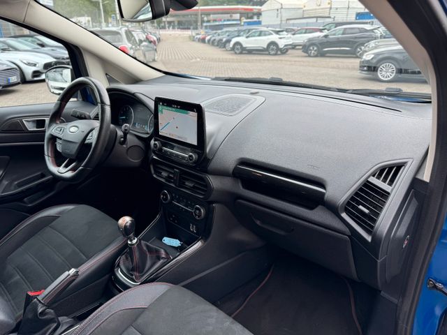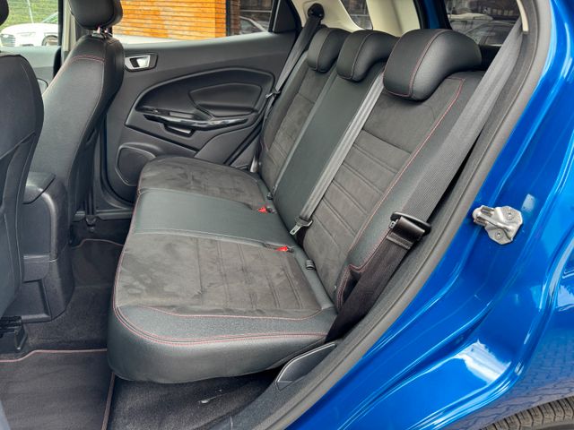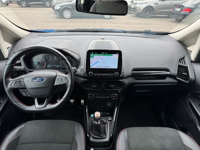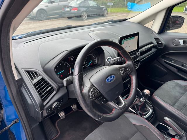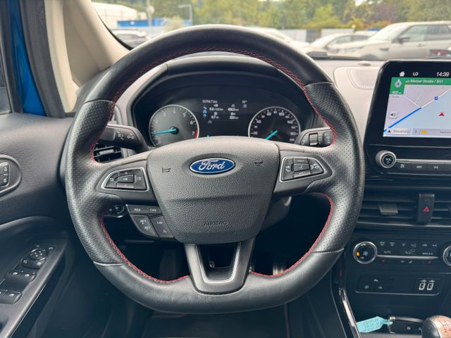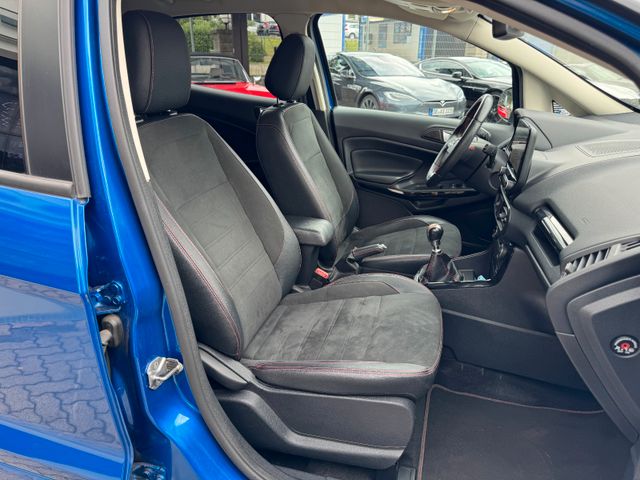 3-Punkt-Sicherheitsgurt hinten, Ambiente-Beleuchtung vorn (LED), Antischlupfregelung (ASR), Außenspiegel elektr. verstell- und heizbar, Außenspiegel Wagenfarbe, Blinkleuchte in Außenspiegel integriert, Bordcomputer, Brillenfach in Dachhimmel / Dachkonsole integriert, Dachreling schwarz, Elektr. Bremskraftverteilung (EBD), Fahrassistenz-System: Berganfahr-Assistent (Hill-Holder), Fahrassistenz-System: Notbrems-Assistent, Farbdisplay für Bordcomputer, Fensterheber elektrisch vorn + hinten mit Komfortschließung, Fußmatten Velours, Gepäckraumabdeckung / Rollo, Getriebe 6-Gang - Typ: 6MX65, Getränkehalter vorn, Handbremshebelgriff Leder, Heckscheibe heizbar, Innenraumfilter: Staub- und Pollenfilter, Intelligent Protection System (IPS), Isofix-Aufnahmen für Kindersitz, Karosserie: 5-türig, Kühlergrill Anthrazit, Lackierung Blazer-Blau, Lendenwirbelstütze Sitz vorn links, Lenksäule (Lenkrad) höhen-/längsverstellbar, LM-Felgen, Modellpflege, Motor 1,0 Ltr. - 92 kW EcoBoost KAT, My Key (2. Fahrzeugschlüssel programmierbar), Parkpilotsystem hinten, Pedale Aluminium, Radstand 2519 mm, Reifen-Reparaturkit, Reifendruck-Kontrollsystem, Rücksitzlehne geteilt/klappbar (60:40), Schadstoffarm nach Abgasnorm Euro 6d-TEMP, Schalt-/Wählhebelgriff Leder (2-farbig), Schaltpunktanzeige, Scheinwerfer mit abgedunkelten Hintergrund, Scheinwerfer-Assistent mit Tag-/Nachtsensor, Seitenschweller Wagenfarbe, Sitz vorn links höhenverstellbar, Sonnenblende links mit Spiegel, Sonnenblende rechts mit Spiegel, Start/Stop-Anlage, Stau-/Ablagefach unter Sitz vorn rechts, Stoßfänger Sport-Ausführung, Türgriffe außen Wagenfarbe, Wankneigungskontrolle (Roll Stability Control, RSC), Zusatzheizung