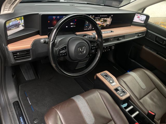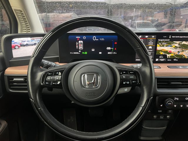 8 Lautsprecher, Airbag Beifahrerseite abschaltbar, Aktive Kopfstützen vorn, Aktiver + dynamischer Gurtstraffer, Ambiente-Beleuchtung, Ambiente-Beleuchtung erweitert, Aufladesystem Gleichstrom (DC), Aufladesystem Wechselstrom (AC), Autom. Begleitfunktion der Beleuchtung (Coming Home, Leaving Home), Automatische Fahrlichtschaltung / Lichtsensor, Außenspiegel mit Kamera, beide, Bremsassistent, Bremsenergierückgewinnung (Rekuperationssystem), Dachspoiler, Einparkhilfe vorn und hinten, Elektromotor 113 kW (cont. 60 kW), Fahrassistenz-System: Adaptive elektr. Servolenkung (Motion Adaptive Electric Power Steering), Fahrassistenz-System: Auspark-Assistent, Fahrassistenz-System: Berganfahrhilfe, Fahrassistenz-System: Fernlichtassistent (HSS), Fahrassistenz-System: Intelligente Geschwindigkeitsanpassung (Tempomat) mit Abstandsregelung I-ACC, Fahrassistenz-System: Kollisionswarnsystem mit Bremseingriff und Beschleunigungskontrolle (LSBC), Fahrassistenz-System: Kollisionswarnsystem mit Bremseingriff und Fußgängererkennung (CMBS), Fahrassistenz-System: Park-Assistent, Fahrassistenz-System: Sicherheitssystem mit automatischem Notruf (ERA GLONASS / eCall), Fahrassistenz-System: Spurhalteassistent (LKAS / LDW), Fahrassistenz-System: Totwinkel-Assistent, Fahrassistenz-System: Verkehrszeichenerkennung, Fahrzeug-Monitoring (Fahrzeugortungssystem mit Geofencing), Fensterheber elektrisch vorn + hinten mit Komfortschließung, Fensterheber elektrisch vorn und hinten, mit Auf-/Ab-Automatik, Fernbedienung zur Aktivierung der Heizung/Klimaanlage (Remote System), Freisprecheinrichtung (Bluetooth) mit Sprachsteuerung, Frontscheibe heizbar, Getriebe für Elektrofahrzeug, HDMI-Schnittstelle (Eingang), Heckleuchten LED, HV-Batterie 35,5 kWh (Lithium-Ionen), Infotainment-System: Honda Connect mit Dual-Touchscreen / Navigationssystem / Internetbasierende Dienste / DAB-Tuner, Innenspiegel, digital (Kamerasystem, abschaltbar), Intelligenter Geschwindigkeits-Begrenzer (ISL), Isofix-Aufnahmen für Kindersitz, Karosserie: 5-türig, Klimaautomatik, Ladekabel mit Schukostecker (Mode 2), Lendenwirbelstütze Sitz vorn links, elektr. verstellbar, Lenkrad heizbar, Lenksäule (Lenkrad) höhen-/längsverstellbar, Leseleuchten hinten, Leseleuchten vorn, Motorsound-System (Acoustic Vehicle Alerting System, AVAS), Multi-Info-Display (i-MID), Multifunktion für Lenkrad, Nebelscheinwerfer LED, Panoramadach (Glas), Parkbremse elektrisch, Reifen-Reparaturset, Reifenkontroll-Anzeige, Rückfahrkamera mit Mehrwinkel-Funktion und Top-Down-View, Scheibenantenne, Scheinwerfer LED, Sitz vorn links höhenverstellbar, Sitzheizung vorn, Sonnenblenden mit Make-up-Spiegel, Sport Taste, Steckdose (12V-Anschluß) in Armaturentafel, Steckdose 230V in Mittelkonsole, Subwoofer, Türgriffe außen ausfahrbar / versenkbar, USB-Ladeanschluß hinten (2-fach), USB-Ladeanschluß vorn, USB-Schnittstelle, Verglasung hinten abgedunkelt (Privacy Glass), Verzurrösen Koffer-/Laderaum