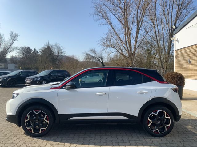 Akustischer Fußgängerschutz (Außensound), Außenspiegel elektr. verstell- und heizbar, elektr. anklappbar, Bluetooth Audio-Streaming, DAB-Tuner (Radioempfang digital), Dach Diamant-Schwarz, Dachhimmel schwarz, Dachspoiler, Elektromotor 100 kW (cont. 57 kW), Elektron. Stabilitäts-Programm Plus (ESP), Fahrassistenz-System: Fernlichtassistent, Fahrassistenz-System: Müdigkeitserkennungs-Sensor, Fahrassistenz-System: Verkehrszeichenerkennung, Fahrzeugschlüssel (2) beide klappbar, Feststellbremse elektrisch, Freisprecheinrichtung Bluetooth, Heckleuchten LED, Karosserie: 5-türig, Klimaautomatik, Kopf-Airbag-System, Kühlergrill, Opel Vizor, Rahmen in Hochglanz-Schwarz, Ladekabel mit Schukostecker (Mode 2), Ladevorrichtung On-Board-Lader (11 kW), MP3-Schnittstelle für Mobiltelefon/Handy, Nebelscheinwerfer LED, Opel Connect, Radstand 2561 mm, Reifen-Reparaturkit, Scheinwerfer LED, Seitenairbag vorn, Sicht-Paket, Sitzbezug / Polsterung: Stoff / Ledernachbildung, Wärmepumpe zur Reichweitenoptimierung, Wärmeschutzverglasung, Wärmeschutzverglasung hinten abgedunkelt (Solar-Protect)