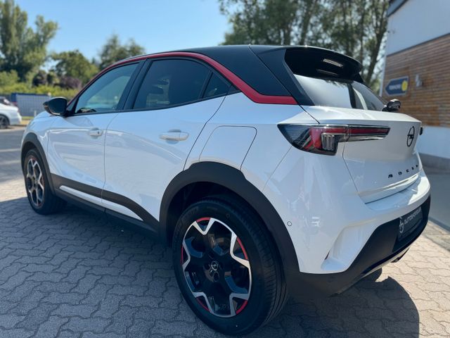 Außenspiegel elektr. verstell- und heizbar, elektr. anklappbar, Bluetooth Audio-Streaming, DAB-Tuner (Radioempfang digital), Dach Diamant-Schwarz, Dachhimmel schwarz, Dachspoiler, Elektron. Stabilitäts-Programm Plus (ESP), Fahrassistenz-System: Fernlichtassistent, Fahrassistenz-System: Müdigkeitserkennungs-Sensor, Fahrassistenz-System: Verkehrszeichenerkennung, Fahrzeugschlüssel (2) beide klappbar, Feststellbremse elektrisch, Freisprecheinrichtung Bluetooth, Getriebe Automatik - mit Start-/Stop (8-Stufen), Heckleuchten LED, Karosserie: 5-türig, Klimaautomatik, Kopf-Airbag-System, Kühlergrill, Opel Vizor, Rahmen in Hochglanz-Schwarz, Motor 1,2 Ltr. - 96 kW, MP3-Schnittstelle für Mobiltelefon/Handy, Nebelscheinwerfer LED, Otto-Partikelfilter (OPF), Radstand 2557 mm, Reifen-Reparaturkit, Schadstoffarm nach Abgasnorm Euro 6d, Seitenairbag vorn, Sicht-Paket, Sitzbezug / Polsterung: Stoff / Ledernachbildung, Start/Stop-Anlage, Wärmeschutzverglasung, Wärmeschutzverglasung hinten abgedunkelt (Solar-Protect)