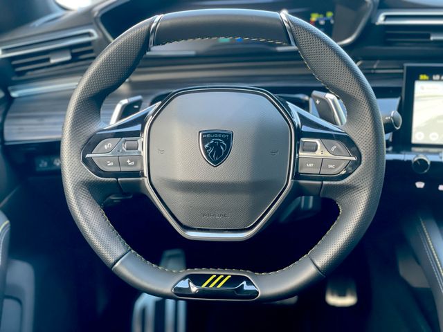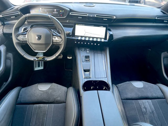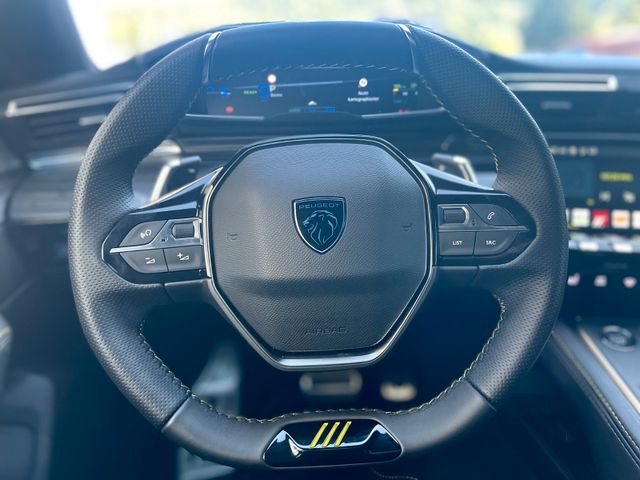 Airbag Beifahrerseite abschaltbar, Airbag Fahrer-/Beifahrerseite, Aktives Federungs-/Dämpfersystem (Peugeot Active Suspension Control), Akustischer Fußgängerschutz (Außensound), Ambiente-Beleuchtung, Antischlupfregelung (ASR), Audiosystem RCC (Radio, MP3-fähig), Autom. Begleitfunktion der Beleuchtung (Coming Home, Leaving Home), Außenspiegel elektr. verstell-, heiz- und anklappbar, Außenspiegel und Spiegelfuss in Perla-Nera-Schwarz, Blinkleuchte in Außenspiegel integriert, Bordcomputer, Bremsenergierückgewinnung, Dachhimmel mit LED-Beleuchtung, Dachhimmel schwarz, Dachreling schwarz, glänzend, Diebstahlsicherung für Räder (Felgenschlösser), Durchladeeinrichtung (Mittelarmlehne hinten), Einparkhilfe hinten, Einparkhilfe vorn, Elektr. Bremskraftverteilung, Elektromotor VA 81 kW / HA 83 kW (Hybridantrieb), Fahrassistenz-System: Aktiver Notbrems-Assistent (Active Safety Brake Plus), Fahrassistenz-System: aktiver Spurassistent (Lenkunterstützung), Fahrassistenz-System: Autom. Distanzregelung (ACC inkl. Stop&Go-Funktion), Fahrassistenz-System: Berganfahr-/Abfahr-Assistent, Fahrassistenz-System: Fernlichtassistent, Fahrassistenz-System: Kollisionswarnsystem, Fahrassistenz-System: Müdigkeitserkennungs-Sensor, Fahrassistenz-System: Night Vision, Fahrassistenz-System: Notbrems-Assistent, Fahrassistenz-System: Totwinkel-Assistent (SAM), Fahrassistenz-System: Verkehrszeichenerkennung, Fensterheber elektrisch vorn + hinten mit Komfortschaltung, Fensterzierleisten schwarz glänzend, Frontscheibe Verbundglas, Fußmatten, Fußraumleuchte vorn LED, Gepäckraumabdeckung / Rollo, Getriebe Automatik - (8-Stufen, Hybrid), Getränkehalter vorn, Gurtkraftbegrenzer, Gurtkraftbegrenzer hinten, Handschuhfach beleuchtet, Heckscheibe heizbar, Heckschürze, schwarz glänzend, Hybrid 265 kW (Motor 1,6 Ltr. - 147 kW), Induktionsladeschale für Smartphone, Innenausstattung: Dekoreinlagen in Echtholz, Innenausstattung: Ziernähte farbig, Innenspiegel rahmenlos mit Abblendautomatik, Isofix-Aufnahmen für Kindersitz, Karosserie: 5-türig, Kartentasche an Vordersitze, Kindersicherung elektrisch, Klimaautomatik, getrennt regelbar Fahrer-/Beifahrerseite, Kofferraumdeckel / Heckklappe elektr. betätigt (öffnen + schliessen, sensorgesteuert), Kombiinstrument digital, Komfortsitze Plus vorn, Kopf-Airbag-System, Kopf-Airbag-System hinten, Ladekabel mit Typ 2-Stecker (Mode 2), Ladevorrichtung On-Board-Lader 3 kW, Lendenwirbelstütze elektrisch verstellbar, Lenkrad mit Multifunktion, Leseleuchten vorn und hinten, vorn LED, Licht- und Regensensor, LM-Felgen, Matrix-LED-Scheinwerfer, Mobile Online Dienste Mirror Screen, Modellpflege, Multifunktionsanzeige mit Touchscreen-Farbdisplay, Navigationssystem i-Connect Advanced, Otto-Partikelfilter (GPF), Parkbremse elektrisch, Pedale Aluminium, Peugeot Connect-Box / SOS-Taste (Notruf für Lokalisierung Fahrzeug), Pyrotechnischer Gurtstraffer, Radioempfang digital (DAB+), Reifen-Reparaturkit, Reifendruck-Kontrollsystem, Rückfahrkamera mit 360° Umgebungsansicht, Rücksitzlehne geteilt/klappbar, Schadstoffarm nach Abgasnorm Euro 6d, Seitenairbag vorn, Seitenscheiben hinten und Heckscheibe dunkel getönt, Sitzbezug / Polsterung: Alcantara / Kunstleder / Stoff, Sitzbezug / Polsterung: Alcantara / Leder / Stoff, Sitze vorn höhenverstellbar, Sitzheizung vorn, Sonnenblenden mit Make-up-Spiegel, Sound-System Focal, Start/Stop-Anlage, Vorrüstung Gepäckraum-Abtrennung (Netz), Warnanlage für Sicherheitsgurte