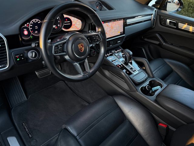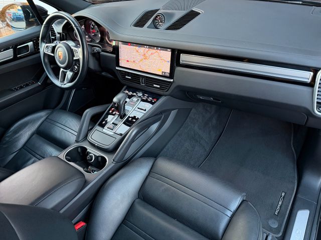 Sonderausstattung:Adaptive Sportsitze inkl. Sitzverstellung 18-Wege und Memory-Paket, Ambiente-Beleuchtung, Apple CarPlay inkl. Sprachsteuerung, Außen-/Innenspiegel mit Abblendautomatik, Außenspiegel lackiert, Bremsanlage: Bremsscheiben mit Keramik beschichtet (Porsche Surface Coated Brake, PSCB), Exterieur-Paket, Fahrassistenz-System: Nachtsicht-Assistent, Fahrassistenz-System: Park-Assistent vorn und hinten inkl. Rückfahrkamera und Surround View, Fahrassistenz-System: Porsche Dynamic Chassis Control Sport (PDCC Sport) inkl. Torque Vectoring Plus (PTV Plus), Fahrassistenz-System: Spurwechselassistent, Feuerlöscher, Fußmatten, Fzg. ohne Modellbezeichnung, Home-Link (Garagentoröffner), Innenausstattung: Glattleder, Serienlederfarbe, Interieur-Paket: Aluminium gebürstet, Ionisator zur Luftreinigung, Komfortzugang (Schlüssellose Türentriegelung), Kraftstofftank: 90 Ltr., Lenkrad heizbar (Zusatz-AV zu Lenkrad), LM-Felgen vorn/hinten: 9,5x21 / 11x21 (Cayenne Exclusive Design Rad, Tiefschwarz-Metallic), Matrix-LED-Scheinwerfer inkl. Porsche Dynamic Light System Plus (PDLS+), Metallic-Lackierung, Panorama-Schiebedach zweiteilig vorn elektrisch, Porsche Torque Vectoring Plus (PTV Plus), Radioempfang digital (DAB+), Radnaben - Abdeckungen Porschewappen farbig, Raucher-Paket, Reifen-Reparaturkit, Servolenkung Plus (geschwindigkeitsabhängig), Sitzbelüftung vorn, Sitzheizung vorn, Sonnenschutzrollo an Seitenscheiben hinten, elektrisch, Sound-System Burmester High-End Surround, Sport-Chrono-Paket, Sport-Design-Paket, Wagenfarbe, Sportendrohre 4-Rohr-Optik, schwarz, Vehicle-Tracking-System Plus (PVTS Plus), Verglasung hinten abgedunkelt (Privacyverglasung) inkl. Wärmeschutzverglasung geräuschdämmend, Vierradlenkung