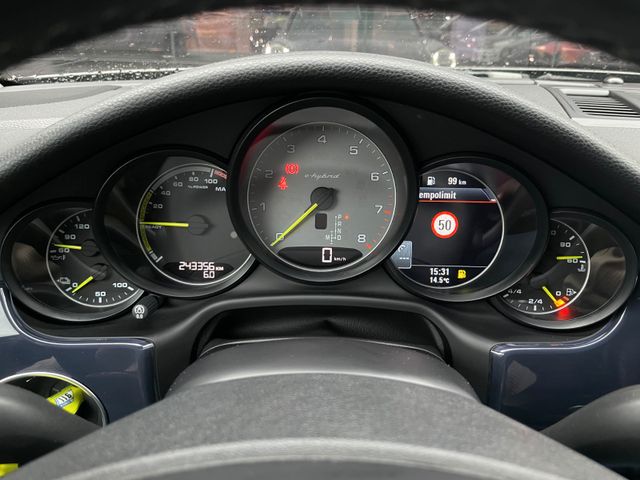 3. Bremsleuchte, Airbag Fahrer-/Beifahrerseite, Aktive Motorhaube, Antriebsart: Heckantrieb, Außen-/Innenspiegel mit Abblendautomatik, Außenspiegel elektr. verstell- und heizbar, beide, Bi-Xenon-Scheinwerfer, Bordcomputer, Bremssättel Grün lackiert, Einschaltautomatik für Fahrlicht, Einstiegsblenden (Aluminium), Elektromotor 70 kW (Hybridantrieb), Fensterheber elektrisch vorn + hinten, Fußgänger-Schutzsystem, Gepäckraumabdeckung / Rollo, Heckklappe mit automatischem Öffnungs- und Schließsystem, Heckscheibe heizbar, Heckscheibenwischer, Heckspoiler adaptiv ausfahrbar (2-Wege), Hybrid 306 kW (Motor 3,0 Ltr. - 245 kW), Innenraumfilter: Aktivkohlefilter (Geruchsfilter), Interieur-Paket: schwarz (Hochglanz), Isofix-Aufnahmen für Kindersitz an Rücksitz, Karosserie: 4-türig, Klimaautomatik, Knieairbag, Komfortsitze vorn, Kopf-Airbag-System (Curtain-Airbag), Lenkrad (Sport/Glattleder, 3-Speichen) mit Multifunktion, Modellpflege, Motor-Schleppmoment-Regulator (MSR), Parkbremse elektrisch, Porsche Car Connect, Porsche Universal-Ladegerät (AC), Radstand 2920 mm, Reifen-Reparaturkit, Reifendruck-Kontrollsystem, S E Hybrid, Schadstoffarm nach Abgasnorm Euro 6, Seitenairbag vorn, Servolenkung Plus (geschwindigkeitsabhängig), Sitzbezug / Polsterung: Teilleder, Traktionskontrolle