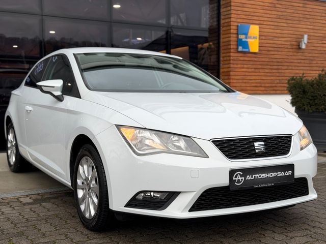 6 Lautsprecher, Ablagetasche an Vordersitzlehnen, Airbag Beifahrerseite abschaltbar, Airbag Fahrer-/Beifahrerseite, Antriebs-Schlupfregelung (ASR), Außenspiegel und Türgriffe außen in Wagenfarbe, Außentemperaturanzeige, Blinkleuchten LED in Außenspiegel integriert, Bluetooth Audio-Streaming, Bordcomputer, Bremsassistent, Doppelscheinwerfer, Elektron. Differentialsperre (EDS), Fahrassistenz-System: Berganfahr-Assistent (Hill-Holder), Fahrassistenz-System: Berganfahr-Assistent und Elektron. Differentialsperre, Handschuhfach beleuchtet, Innenausstattung: Chrom-Applikationen, Isofix-Aufnahmen für Kindersitz, Karosserie: 3-türig, Knieairbag Fahrerseite, Kopf-Airbag-System, Kopfstützen hinten (3-fach), Kopfstützen vorn verstellbar, Lendenwirbelstütze Sitz vorn links, verstellbar, Lenkrad (Sport/Leder), Lenkrad mit Multifunktion, LM-Felgen, Mittelkonsole vorn mit Mittelarmlehne, Becherhalter, Ablagebox und Luftausströmer hinten, Modellvariante CO2-optimiert (Ecomotive), Motor 1,2 Ltr. - 77 kW TSI, Reifen-Reparaturset, Reifenkontroll-Anzeige, Rücksitzlehne geteilt/klappbar (1/3-2/3), Schadstoffarm nach Abgasnorm Euro 5, Schalt-/Wählhebelgriff Leder, SEAT Media-System Touch Colour, Seitenairbag, Sitz vorn links höhenverstellbar, Sitz vorn rechts höhenverstellbar, Sonnenblende links mit Spiegel (beleuchtet), Sonnenblende rechts mit Spiegel (beleuchtet), Sprachsteuerungs-System, Stau-/Ablagefach unter Sitze vorn, Steckdose (12V-Anschluß) vorn, Stoßfänger lackiert, USB-Anschluss und AUX-IN-Anschluss (CUP-Eingang), Wärmeschutzverglasung