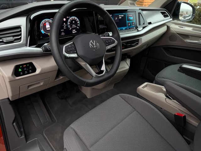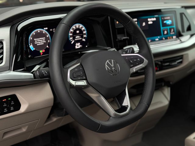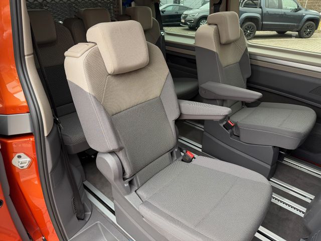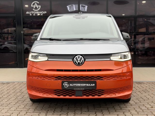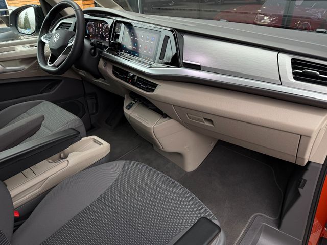 Airbag Fahrer-/Beifahrerseite, Beifahrerairbag abschaltbar, Audiosystem Ready 2 Discover (Touchscreen-Farbdisplay 10", inkl. Streaming & Internet), Ausführung: Life, Ausführung: Multivan, Außenspiegel elektr. verstell-, heiz- und anklappbar, Außenspiegel konvex, links, Außenspiegel konvex, rechts, Außenspiegel schwarz lackiert, Blinkleuchten LED in Außenspiegel integriert, Bodenbelag im Lade-/Fahrgastraum Teppich, Bordwerkzeug und Reifen-Reparaturkit, Bremsbelagverschleissanzeige, Bremsscheiben vorn 17", Diebstahlsicherung für Räder (Felgenschlösser), Elektron. Stabilitäts-Programm (ESP) mit Bremskraftverstärker elektro-mechanisch, Fahrassistenz-System: Ablenkungs- und Müdigkeitserkennung, Fahrassistenz-System: Ausweich-Assistent und Abbiege-Assistent, Fahrassistenz-System: Bremsassistent (HBA), Fahrassistenz-System: Multikollisionsbremse (Multi Collision Brake), Fahrassistenz-System: Spurhalteassistent (Lane Assist), Fahrassistenz-System: Umfeldbeobachtungssystem (Front Assist) mit City-Notbremsfunktion, Fahrassistenz-System: Verkehrszeichenerkennung, Fenster im Lade-/FG-Raum: - feststehend, vorn links, Fenster im Lade-/FG-Raum: - feststehend, vorn rechts, Fensterheber elektrisch vorn, Funkschlüssel (2), Fußmatten Fahrerhaus: Textil, Handschuhfach beleuchtet, Heckscheibe heizbar, mit Wischanlage, Innenausstattung: Dekoreinlagen Dark Silver brushed, Innenspiegel mit Abblendautomatik, Intelligent Speed Assist inkl. Geschwindigkeitsbegrenzer, Isofix-Aufnahmen für Kindersitz an Rücksitz, Karosserie/Aufbau: Bus, Keyless-Start ohne Safesicherung, Kraftstofftank: 60 Ltr., Laderaumunterteilung und Gepäcksicherungsnetz, Lautsprecher (8), Lenkrad (Leder) mit Multifunktion und Schaltfunktion, Luftausströmer im Fond, Mobile Online Dienste App-Connect inkl. App-Connect Wireless (Apple CarPlay, Android Auto), Mobile Online Dienste Vorbereitung We Connect und We Connect Plus, Mobiltelefon Schnittstelle Bluetooth, Motor 2,0 Ltr. - 150 kW TSI, Multimedia-Schnittstelle 2 x USB vorn und 4 x USB-Ladeanschluß Fahrgastraum (Typ C), Nichtraucher-Paket, Notrufsystem, Otto-Partikelfilter (OPF), Radioempfang digital (DAB+), Radstand 3124 mm, Reifenkontroll-Anzeige, Schadstoffarm nach Abgasnorm Euro 6e, Schiebetür Lade-/Fahrgastraum links mit Zuziehhilfe, Schiebetür Lade-/Fahrgastraum rechts mit Zuziehhilfe, Schubladen unter Rücksitze außen und 2 Abfallbehälter, Seitenairbag / Kopfairbag / Center-Airbag vorn und Kopfairbag hinten, Servolenkung elektro-mechanisch, geschwindigkeitsabhängig, Sitz-Paket: 7-Sitzer, 2-2-3 (2 Einzelsitze, 2 Einzelsitze, 3 Einzelsitze), Sitzausstattung: 7-Sitzer, Sitzbezug / Polsterung: Stoff Ribella, Sitze im Fahrerhaus: 4 Armlehnen, Lendenwirbelstützen elektr. und Klapptische, Sitze im Fahrerhaus: Beifahrersitz höhenverstellbar, Sitze im Fahrerhaus: Fahrersitz höhenverstellbar, Sitze im Lade-/FG-Raum: 1.Reihe mit 2 Armlehnen innen (abnehmbar), Sitze im Lade-/FG-Raum: 2.Reihe mit Vorbereitung für 2 Armlehnen innen, Sonnenblenden mit Spiegel (beleuchtet), Sprachassistent IDA und elektronische Sprachverstärkung, Start/Stop-Anlage Motor, Tagfahrlicht und Assistenzfahrlicht mit Coming Home / Leaving Home, Umfeldbeleuchtung seitlich, Verbandkasten und Warndreieck, Vorbereitung für Alkohol-Wegfahrsperre (Alcolock), Warnanlage für Sicherheitsgurte vorn und hinten, Zierleiste zwischen Scheinwerfern: schwarz lackiert und Chromleisten, Zul. Gesamtgewicht 2,85 t, Zusatzheizung