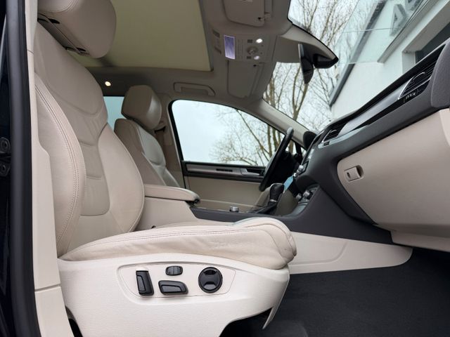 Dieser gepflegte VW Touareg aus dem Jahr 2015 überzeugt durch seine umfangreiche Ausstattung und Vielseitigkeit. Der leistungsstarke 6-Zylinder Dieselmotor mit 262 PS und Allradantrieb bietet hervorragende Fahreigenschaften sowohl auf als auch abseits befestigter Straßen. Die schwarze Metallic-Lackierung in Kombination mit der Lederausstattung verleiht dem Fahrzeug eine elegante Erscheinung. Die 4-Zonen-Klimaautomatik sorgt für optimalen Komfort auf allen Plätzen. Besonders praktisch für längere Reisen ist der großzügige 100-Liter Tank. Mit einer gebremsten Anhängelast von 3.500 kg eignet sich dieser Touareg perfekt für anspruchsvolle Transportaufgaben. Das Panorama-Glasdach lässt viel Licht ins Fahrzeuginnere. Die umfangreichen Sicherheitssysteme wie Spurhalteassistent, Müdigkeitserkennung und zahlreiche Airbags bieten optimalen Schutz. Dank lückenloser Servicehistorie ist der Wagen in einem technisch einwandfreien Zustand.Sehr geehrte/r Kunde/in,